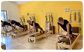 • Pilates sur appareils (Reformer, Cadillac, Chair) : appareils équipés de ressorts qui offrent résistance et assistance, permettant un travail plus ciblé et progressif.