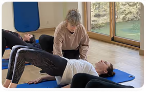 Cours en duo (à deux) sur tapis et appareils : partagez une séance personnalisée tout en bénéficiant d’un encadrement précis, adapté aux objectifs et au niveau de chacun.